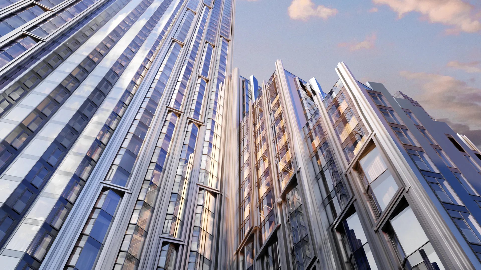 Здания приобрели «ледяной» блеск благодаря масштабной площади остекления и элементам экстерьера из стемалита и стали. Три корпуса переменной этажности объединены общим стилобатом и формируют новый силуэт западной части Москвы.
