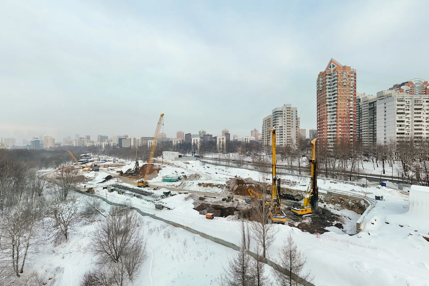 На объекте строительства продолжаются земляные работы – выполняется разработка котлована под всеми корпусами жилого комплекса. Выполняются работы нулевого цикла - устройство буронабивных свай, цементация грунтов по технологии JET, а также устройство грунтовых анкеров и специализированной распорной системы.