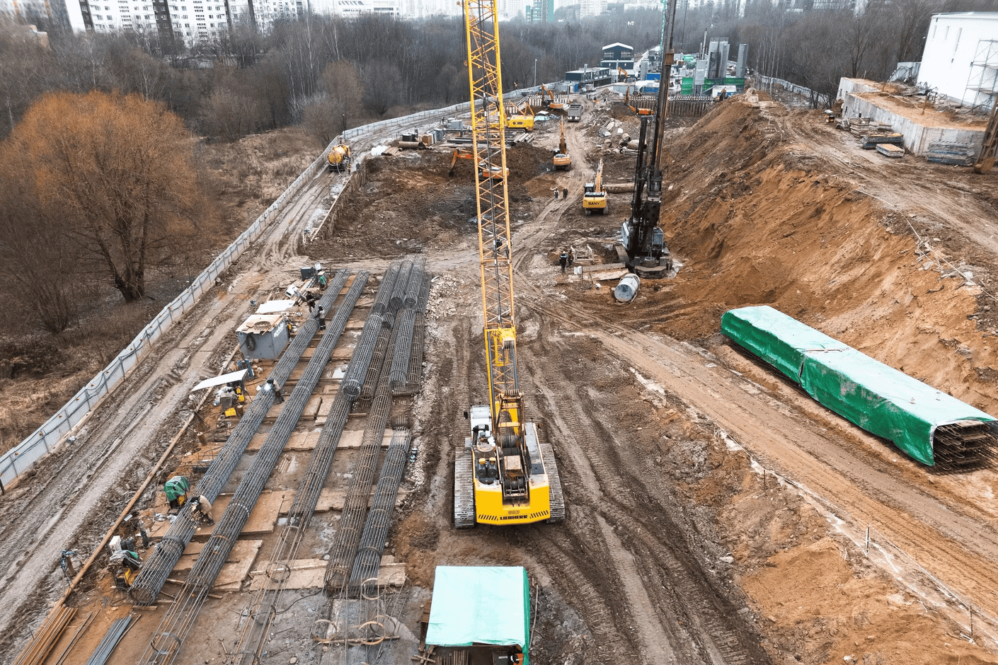 Строители приступили к новому этапу работ – устройству грунтовых анкеров и специализированной распорной системы, необходимых для обеспечения устойчивости конструкций ограждений котлована при его последующей разработке до проектного уровня.
