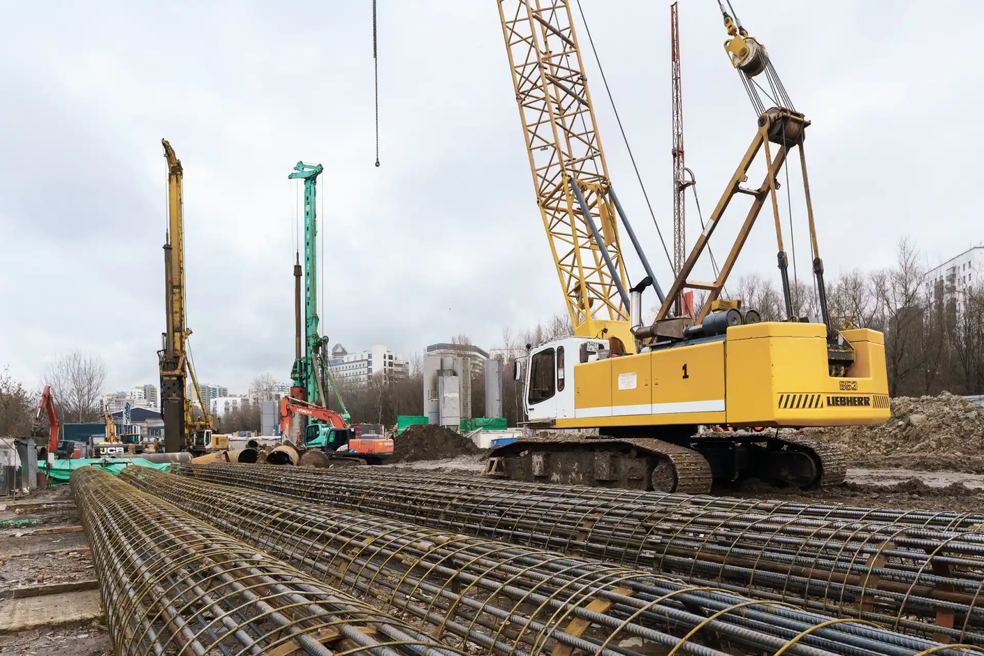 На объекте строительства завершены работы по устройству буронабивных свай корпуса №1, строители приступила к разработке котлована под корпусом № 1.