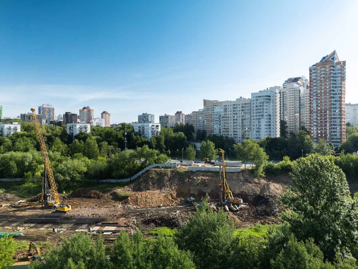Строительная площадка будущего жилого комплекса “АЙС ТАУЭРС” постепенно меняет облик. В июне велись работы подготовительного этапа: устройство временных дорог и сооружений, расчистка пятна застройки, старт монтажа офиса продаж.