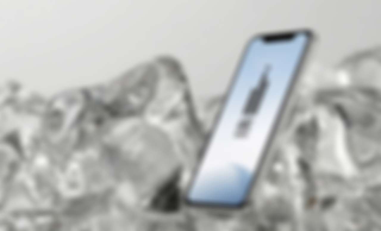 Дизайн обыгрывает тему льда и прозрачности.